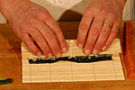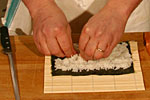 Aggiungere al riso sulla stuoietta i bastoncini di